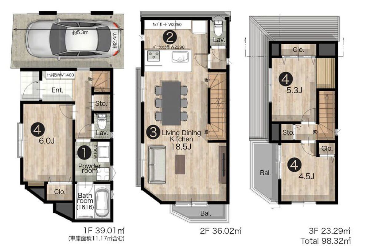 【閑静な市谷加賀町エリア・全2区画】建物98m2&3LDK車庫付プラン有り