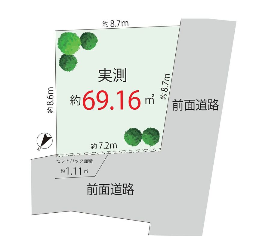 | 駐車場 | - | 道路の幅員 | アスファルト舗装 セットバック有 (【面積】1.11m2 ) |