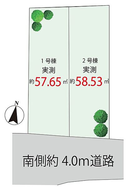 | 建物面積 | 92.34m2・93.55m2 | 土地面積 | 57.65m2・58.53m2 |
