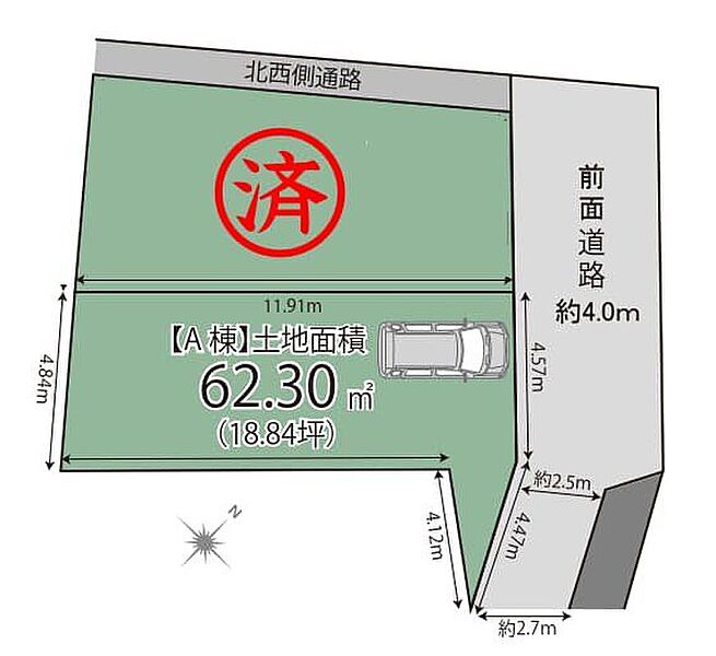 | 駐車場 | - | 道路の幅員 | 道路幅4.0m アスファルト舗装 |