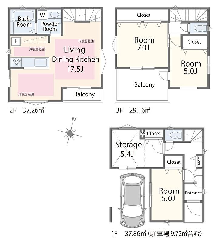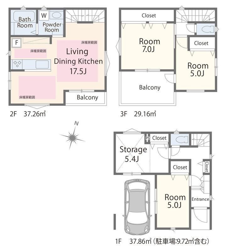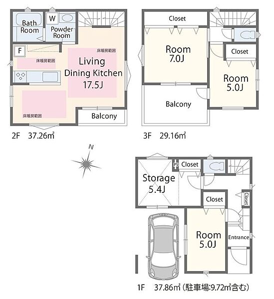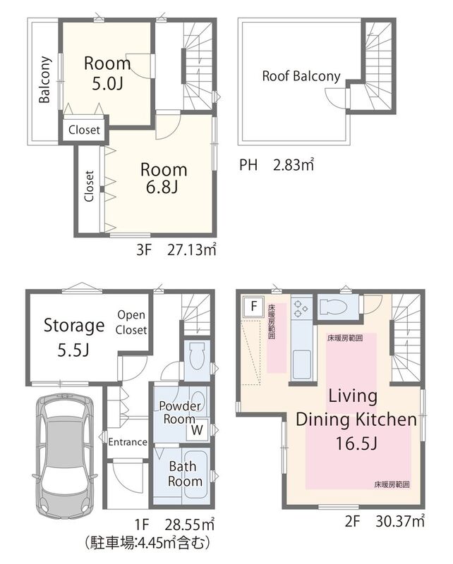 | 間取り | 2LDK+S・3LDK+S | 建物構造 | 木造3階建て |