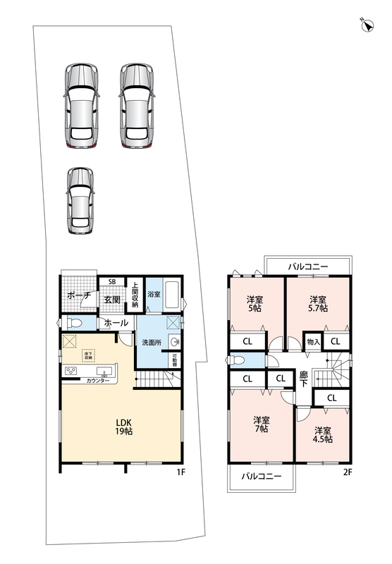 | 駐車場 | 3台 | 道路の幅員 | 北東側5.3m |