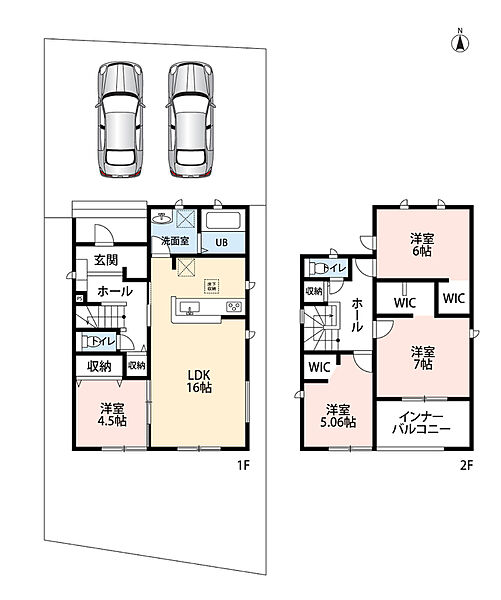 | 駐車場 | 2台 | 道路の幅員 | 北側4m |
