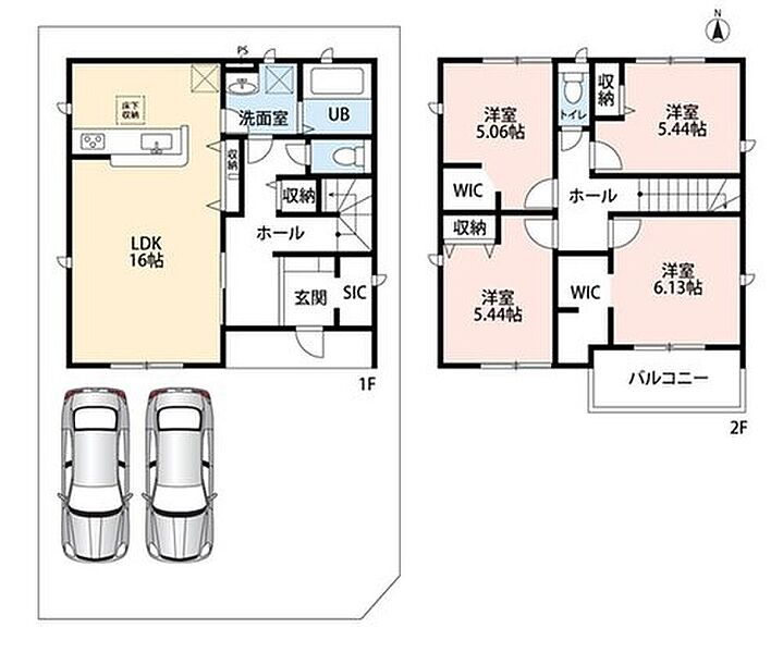 ・ウォークインクローゼット2ヵ所付きで収納充実