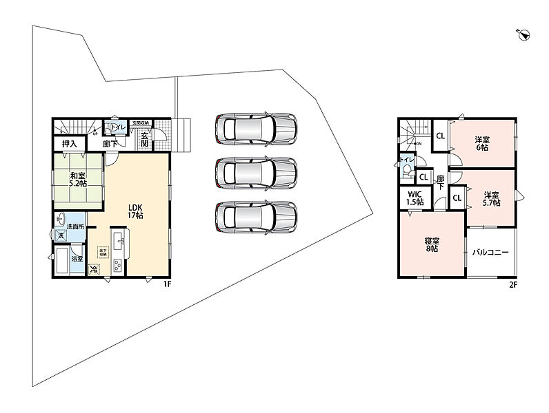| 駐車場 | 3台 | 道路の幅員 | 北東側6.0m、北東側7.0m |