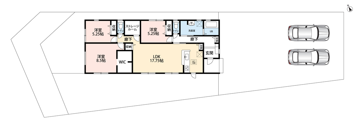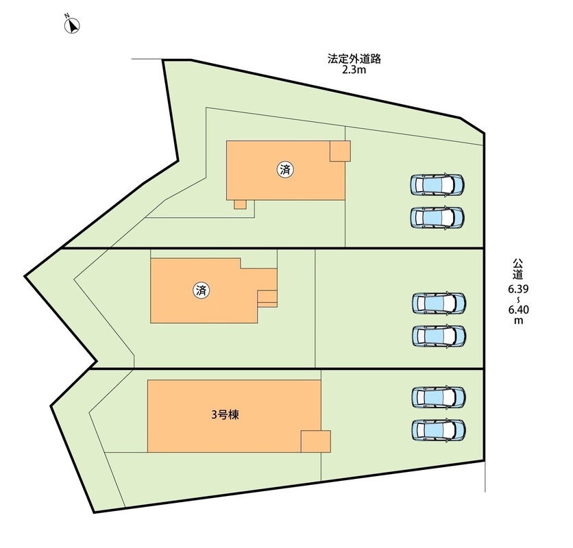 | 駐車場 | 2台 | 道路の幅員 | 東側6.39~6.40m |