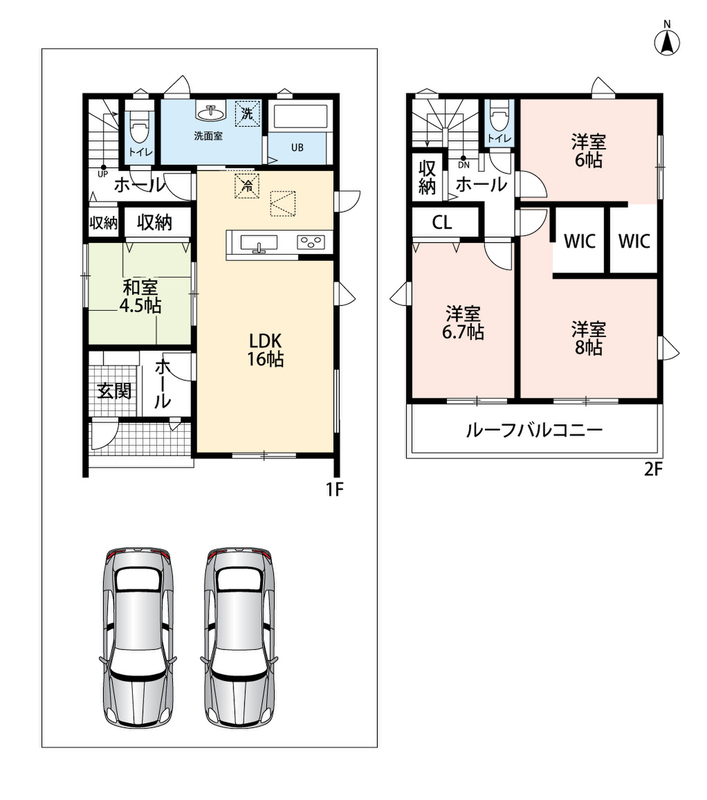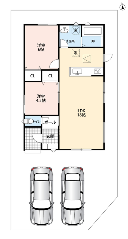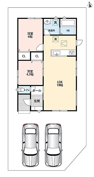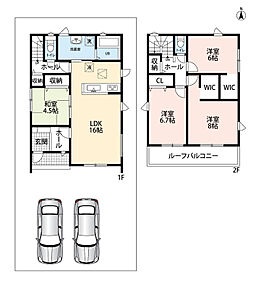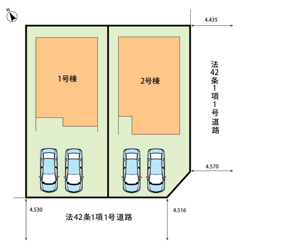 | 駐車場 | 2台 | 道路の幅員 | 東側4.5m、南側4.5m |