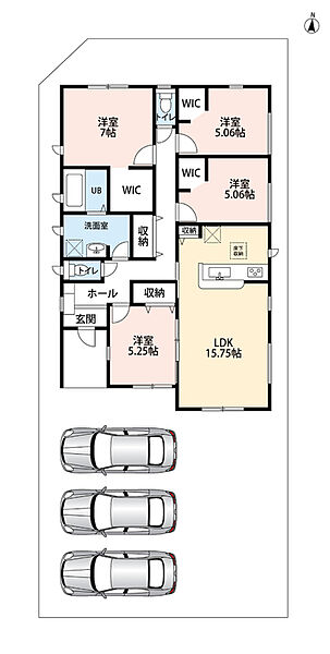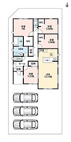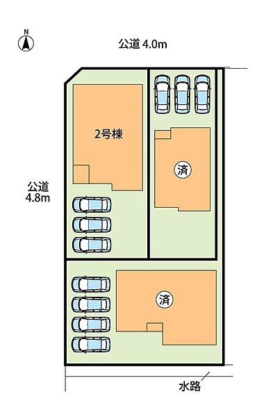 | 駐車場 | 3台 | 道路の幅員 | 北側4m、西側4.8m |