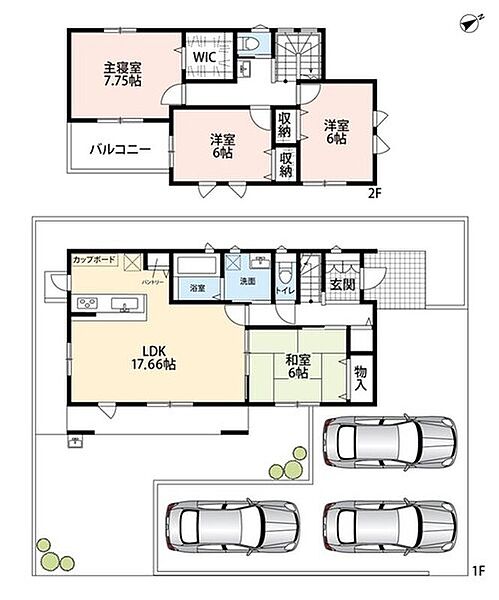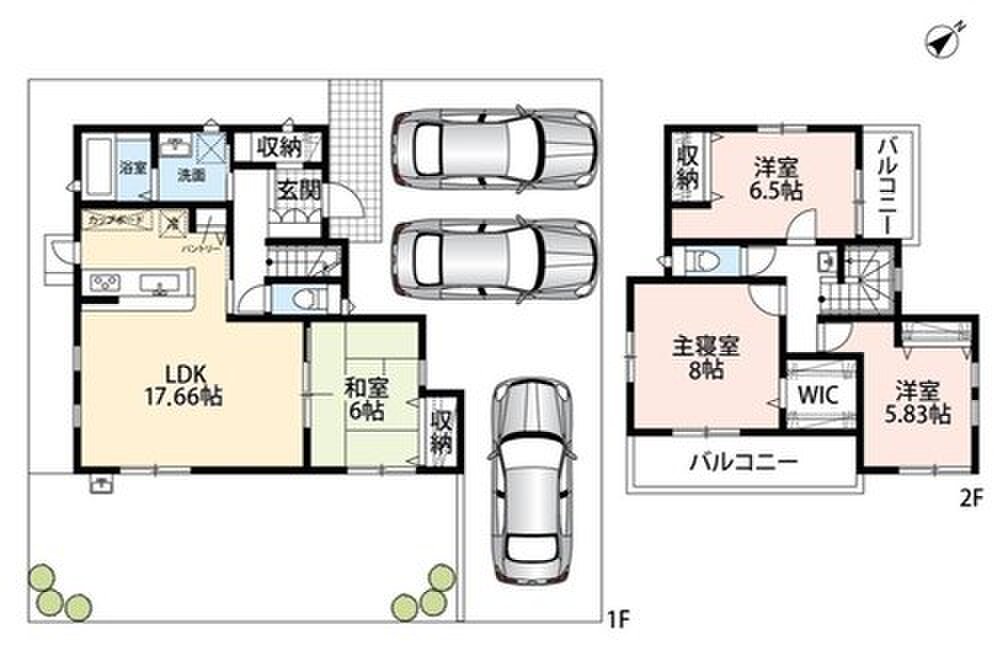 ・駐車場広々で駐車3台可能!前面道路6mで駐車らくらく