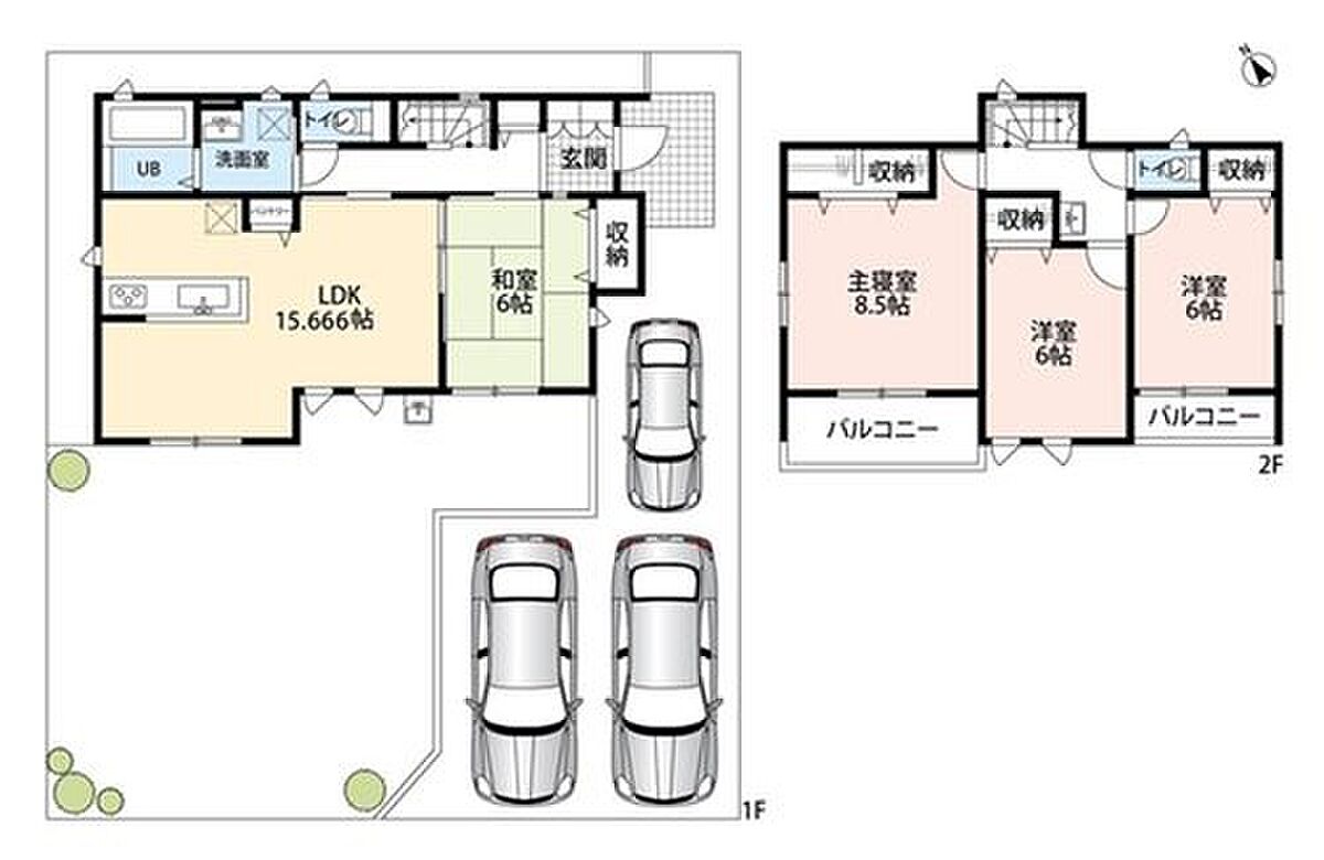 | 駐車場 | 2台 | 道路の幅員 | 6m・7m |