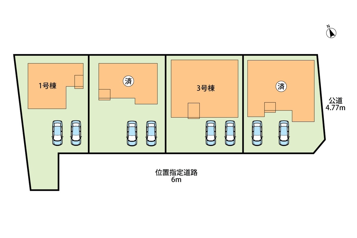 | 駐車場 | 2台 | 道路の幅員 | 南側6m、東側4.7m |