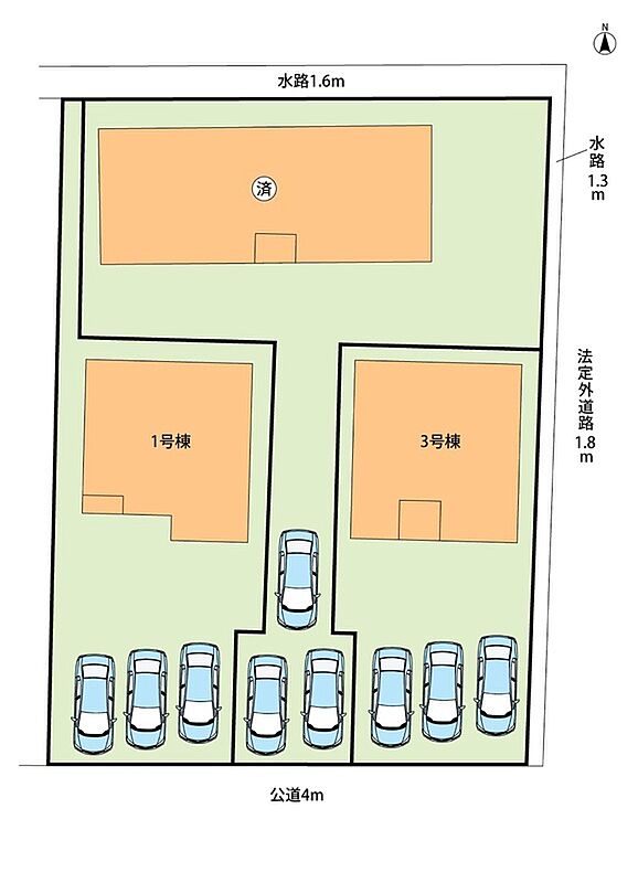 | 駐車場 | 3台 | 道路の幅員 | 南側4.00m |