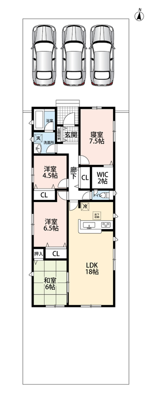 | 駐車場 | 3台 | 道路の幅員 | 北側7.0m |
