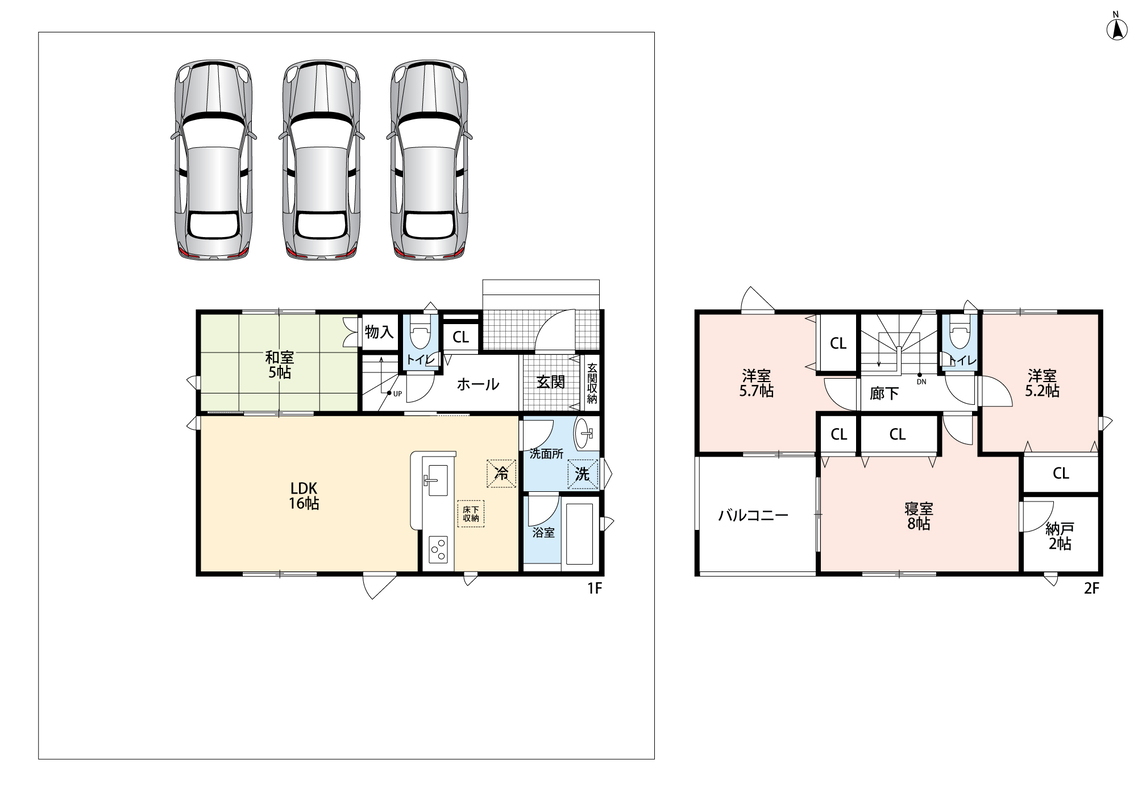 | 駐車場 | 3台 | 道路の幅員 | 北側6.03m |