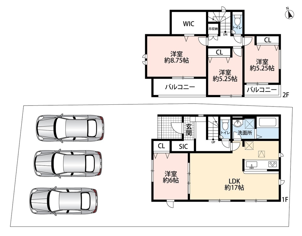 ・ウォークインクローゼット付きで収納充実!駐車3台可能!