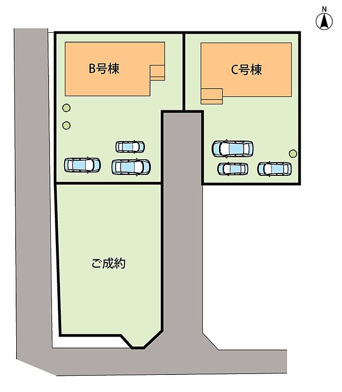 | 駐車場 | 3台 | 道路の幅員 | 東側5m、西側5m |