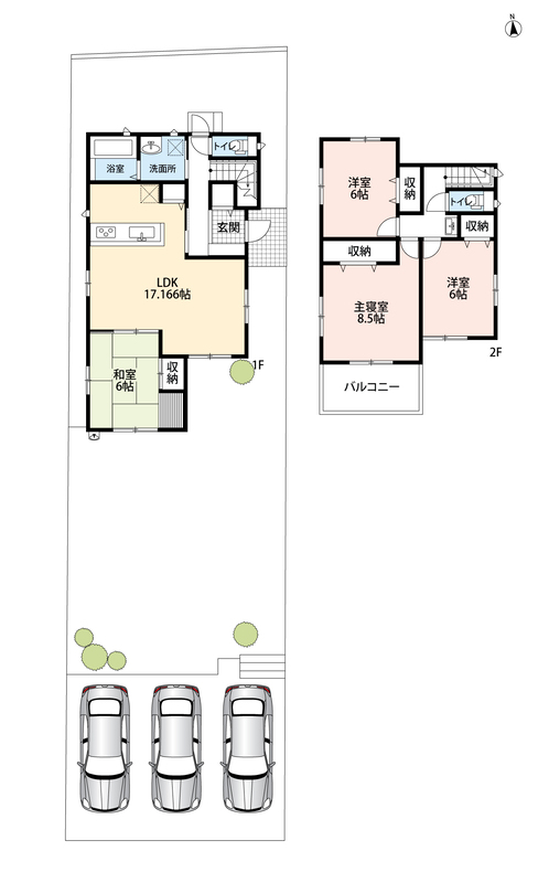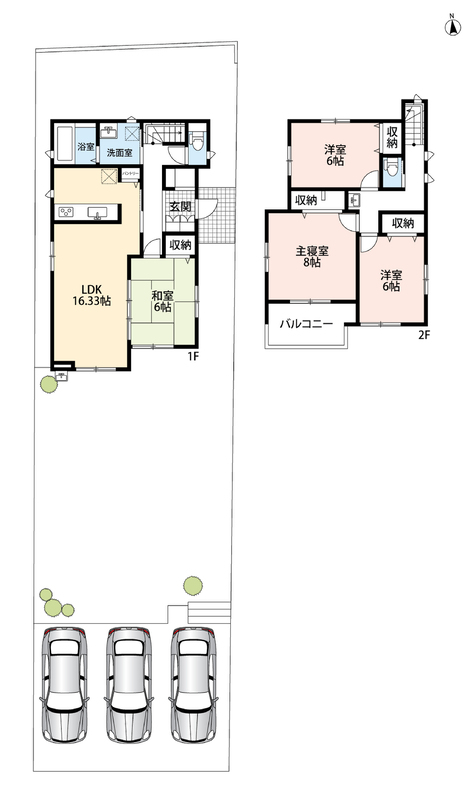 ・ゆとりのある敷地で並列駐車3台可能!前道広々で駐車ラクラク!