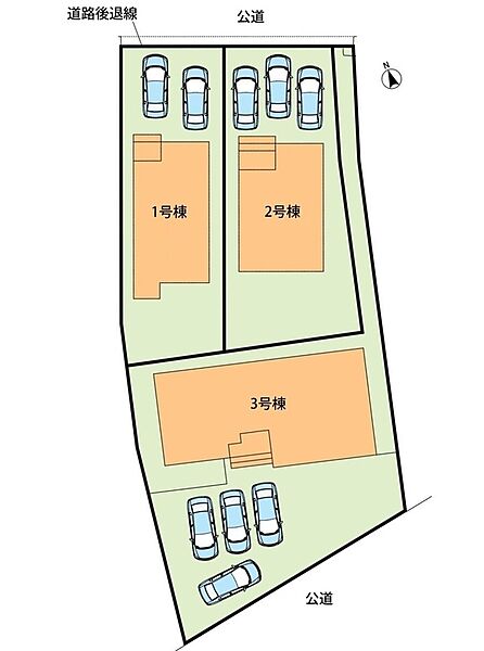 | 駐車場 | 2台 ~ 4台 | 道路の幅員 | 北側3.3m~3.4m、南側8.5m |