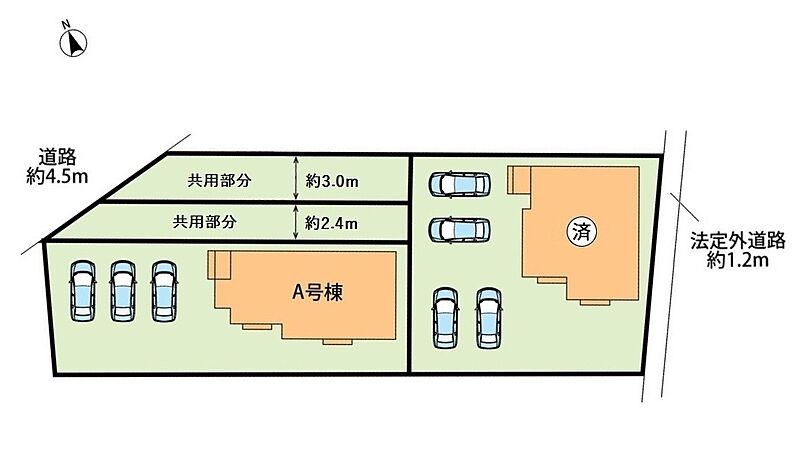 | 駐車場 | 3台 | 道路の幅員 | 北西側4.5m |