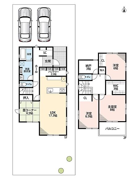 | 駐車場 | 2台 | 道路の幅員 | 北側5m |