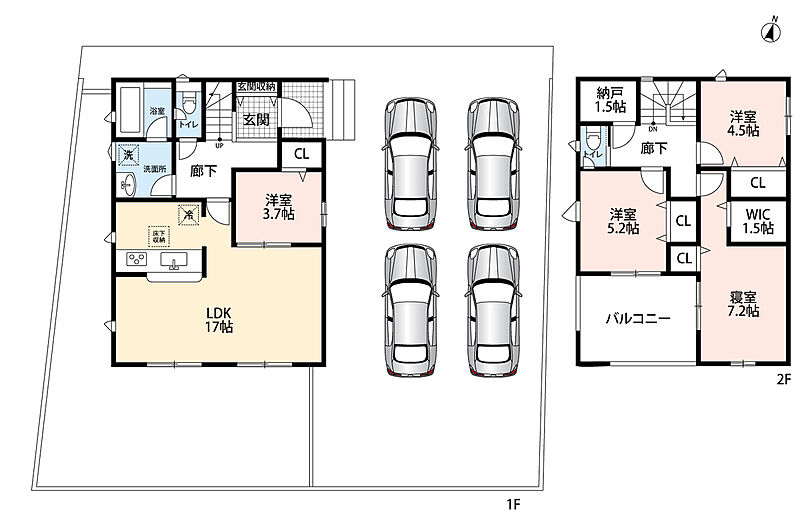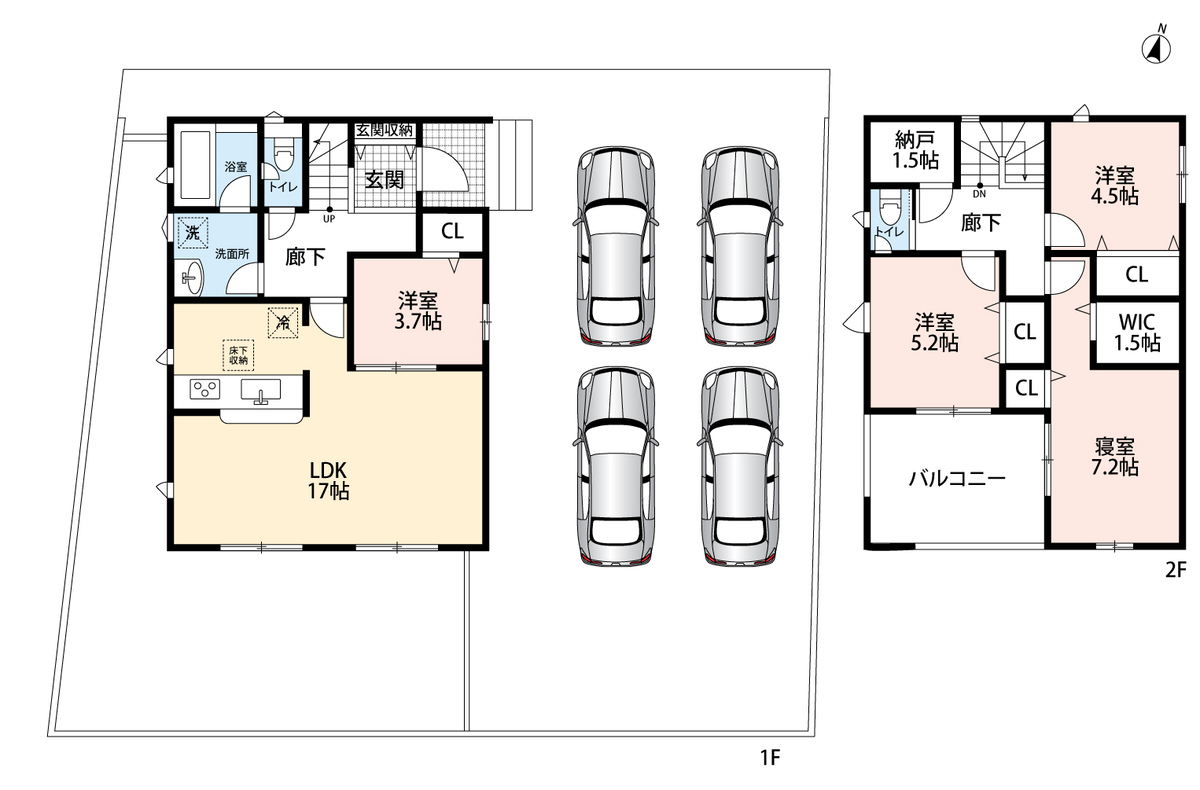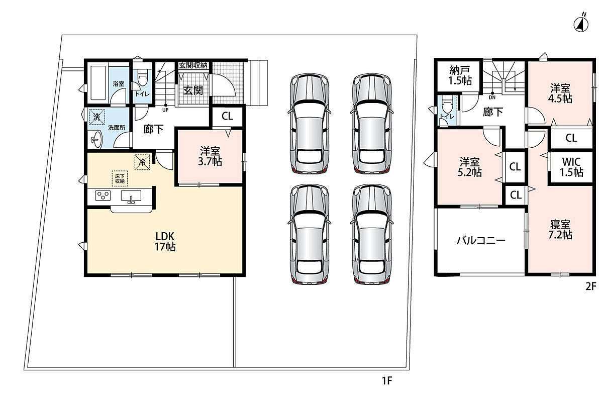 | 駐車場 | 4台 | 道路の幅員 | 北側4.2m |
