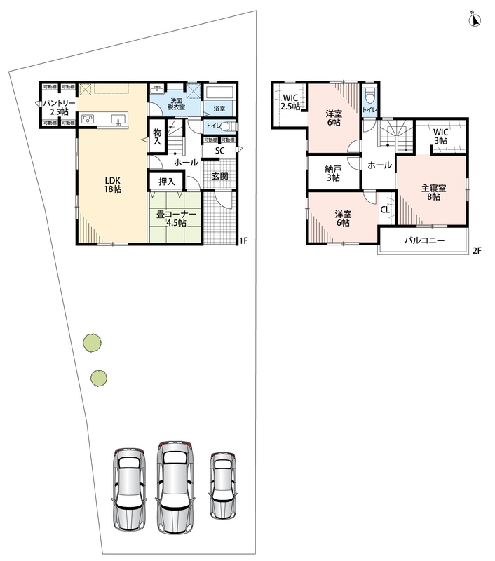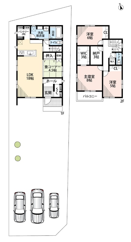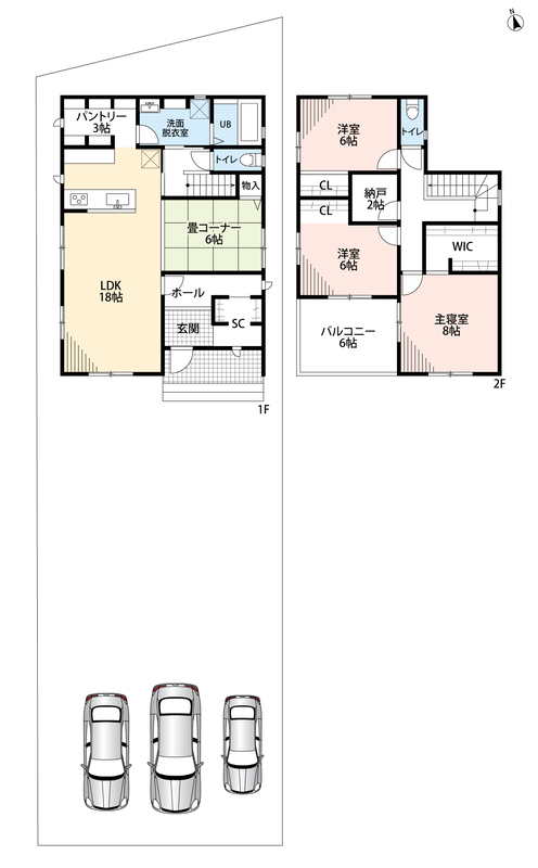 ・ゆとりのある敷地で駐車3台可能!来客時も安心!