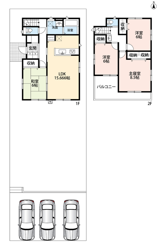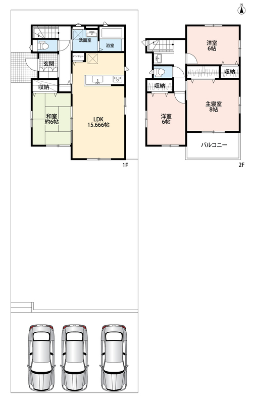 ・ゆとりのある敷地で並列駐車3台可能!