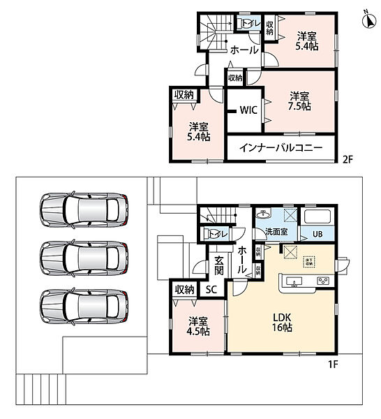 ・ゆとりのある敷地で並列駐車3台!前道6mで駐車ラクラク!