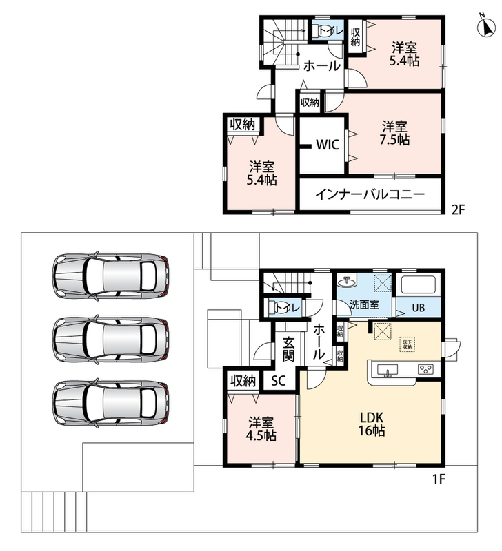 ・ゆとりのある敷地で並列駐車3台!前道6mで駐車ラクラク!