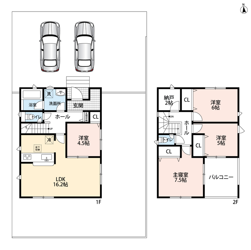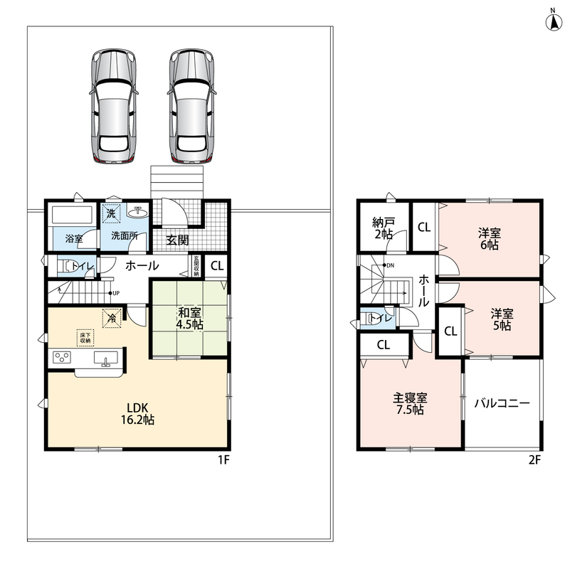 | 駐車場 | 2台 | 道路の幅員 | 北側6m |