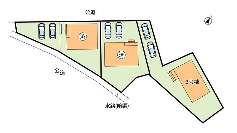 | 駐車場 | 2台 | 道路の幅員 | 北西側4m |