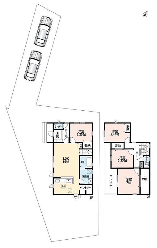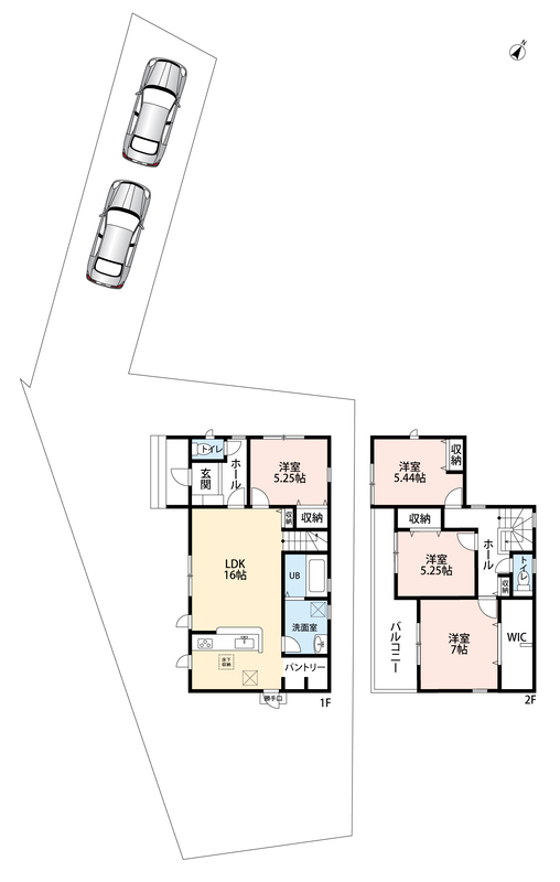 | 駐車場 | 2台 | 道路の幅員 | 北西側4m |