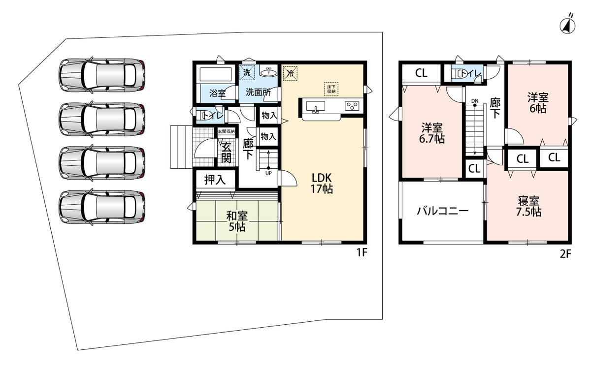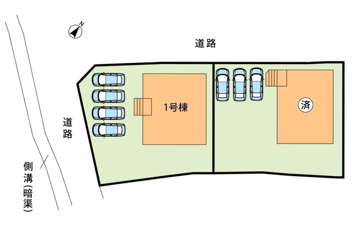| 駐車場 | 4台 | 道路の幅員 | 西側5.1m、北側6.2m |