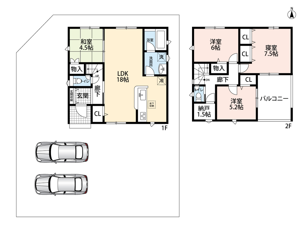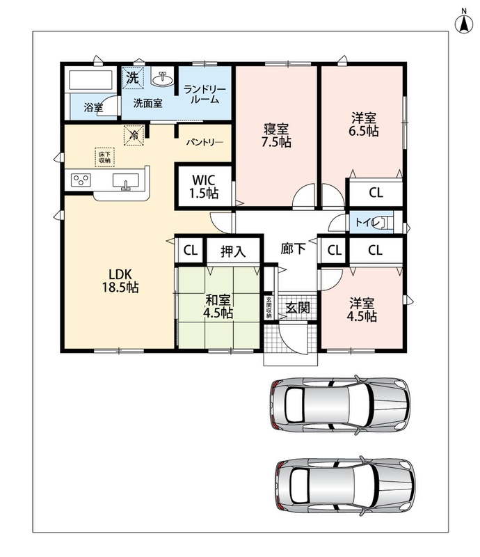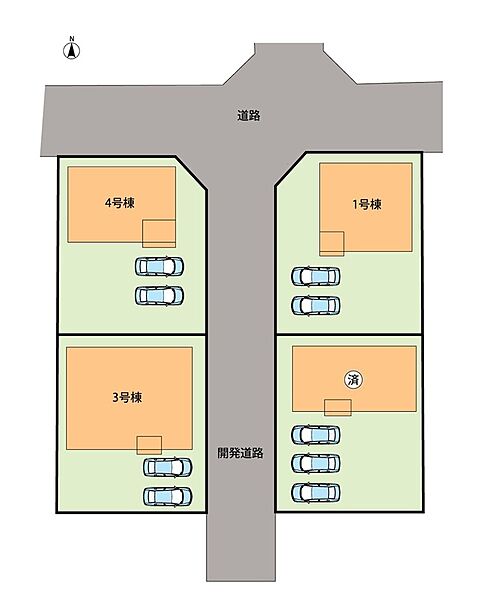 駐車場 2台 道路の幅員 東側・西側6.0m、北側6.01m