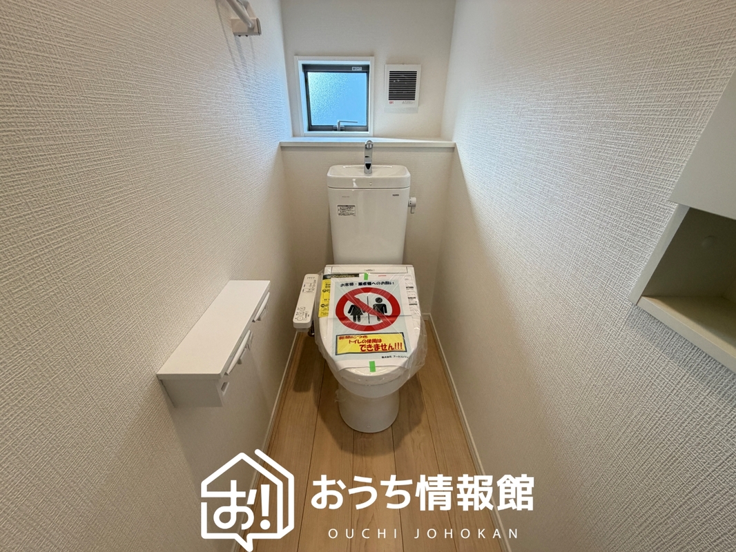 汚れてもサッとひと拭きでお手入れ簡単、エコ仕様の温水洗浄便座付きのトイレです。 バリアフリーにも配慮しています。