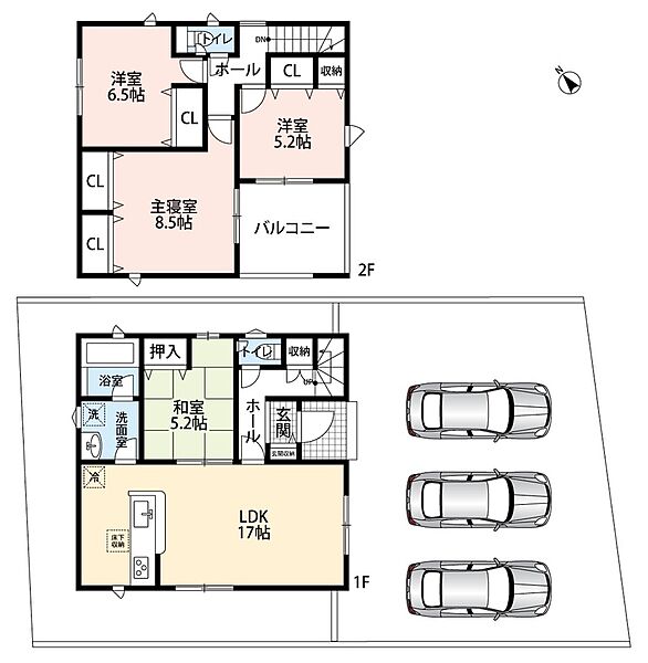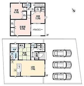 | 駐車場 | 3台 | 道路の幅員 | 南東側6.0m |