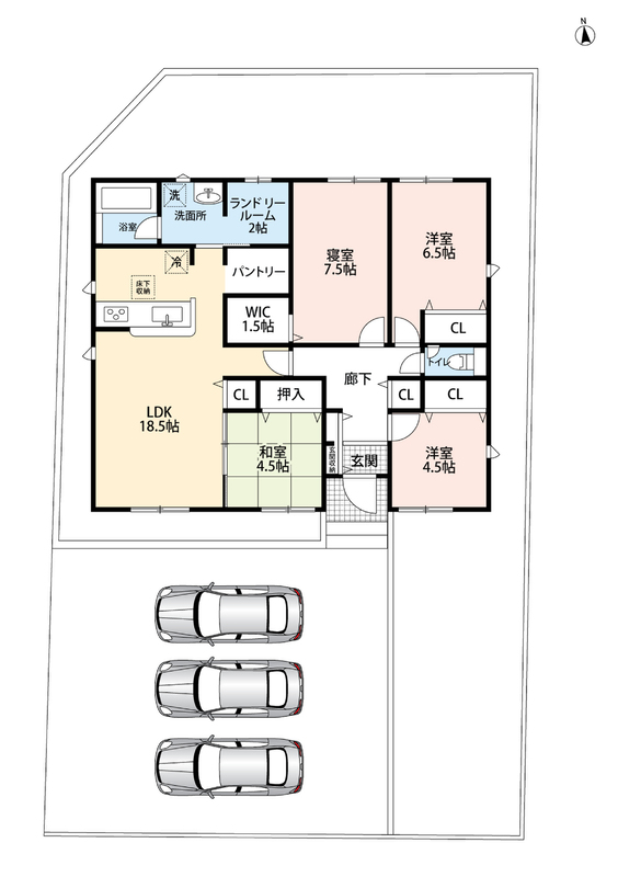| 駐車場 | 3台 | 道路の幅員 | 北側5.9m、西側5.9m |