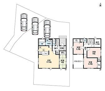・ゆとりのある敷地で並列駐車3台可能