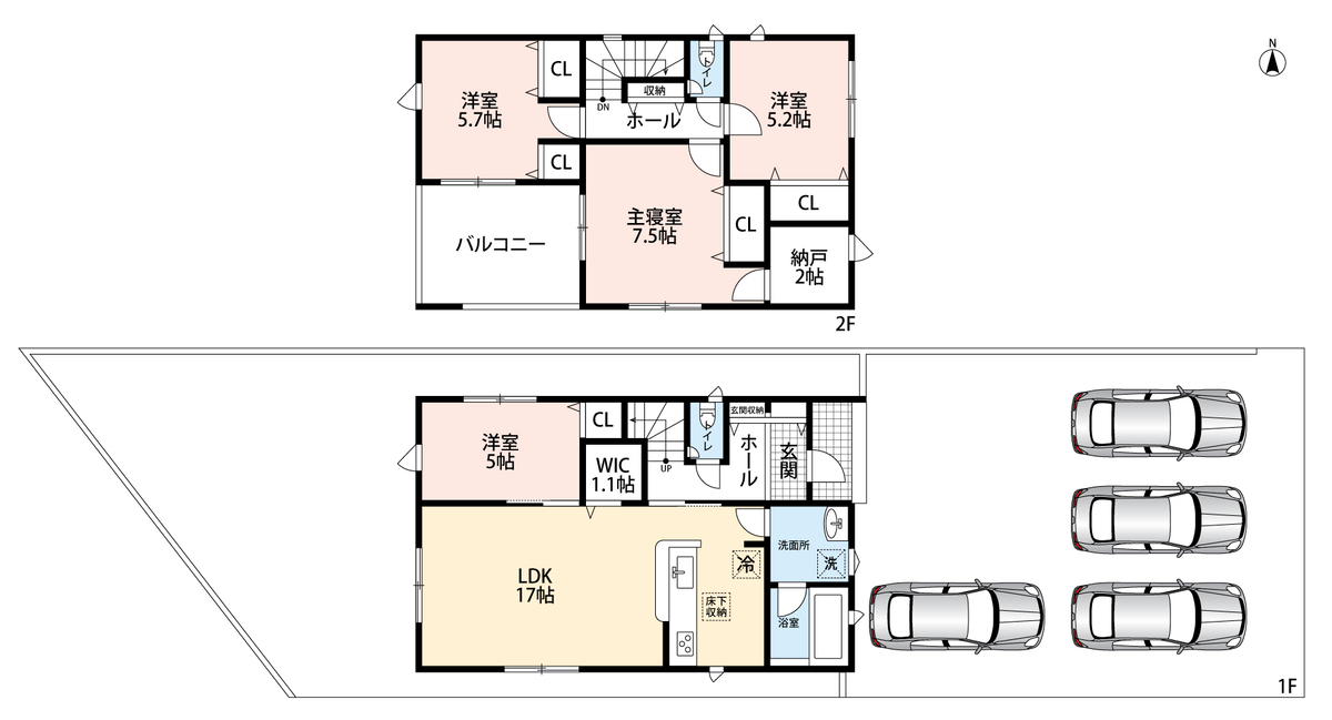 - ※完成予想図やCG合成画像は、門塀・植栽・庭・外観等、実際とは多少異なる場合があります。