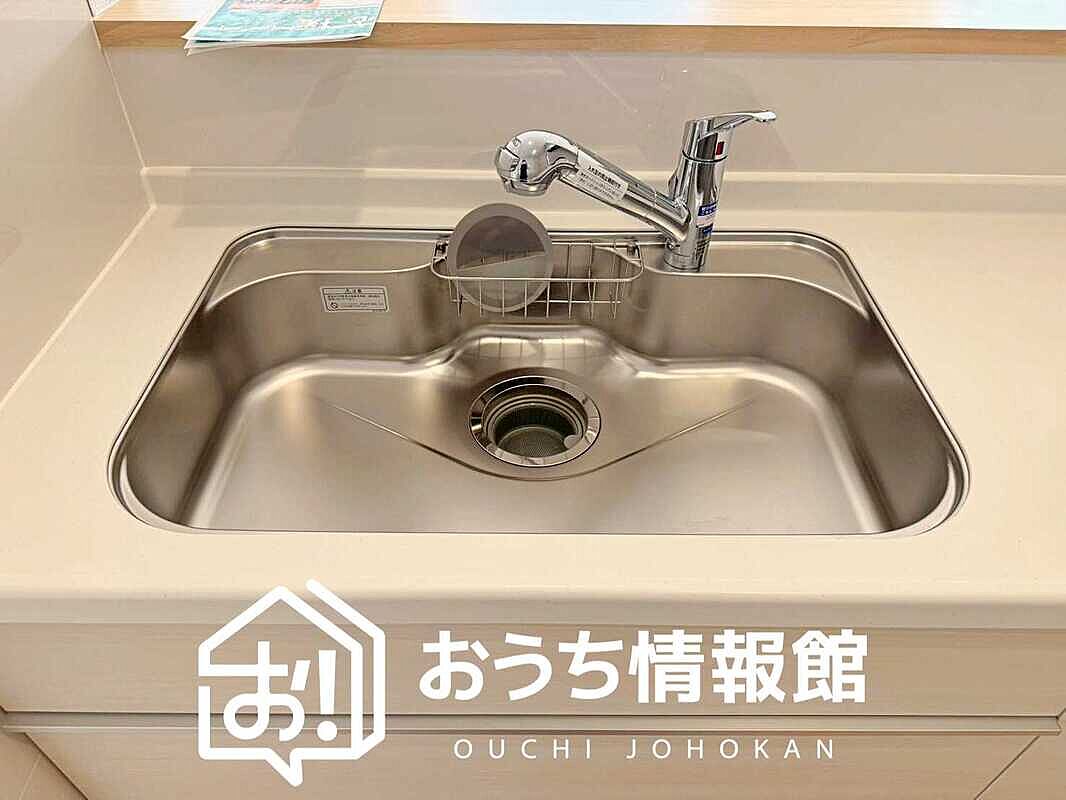 広々とした凸型シンクに洗剤ポケットを標準...