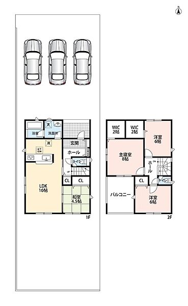| 駐車場 | 3台 ~ 4台 | 道路の幅員 | 北側6m、西側6m |