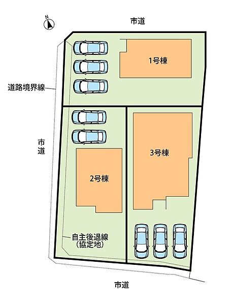 | 駐車場 | 3台 | 道路の幅員 | 北側4.0m、西側2.4m、南側3.1m |