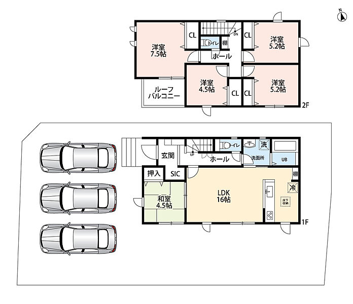 LIGNAGE 亀山市山下町 第1期 全3邸 間取り 4LDK~5LDK 価格 2090万円 建物面積 100.20m2~108.48m2 土地面積 207.00m2~223.29m2 -