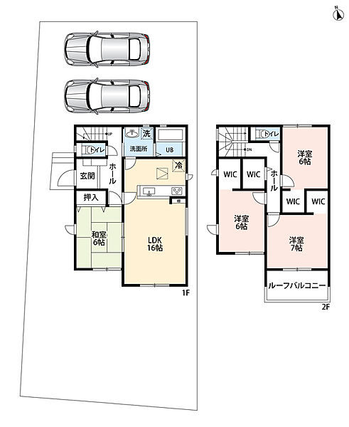 2号地 間取り 4LDK 価格 2390万円 建物面積 108.48m2 土地面積 209.49m2 -
