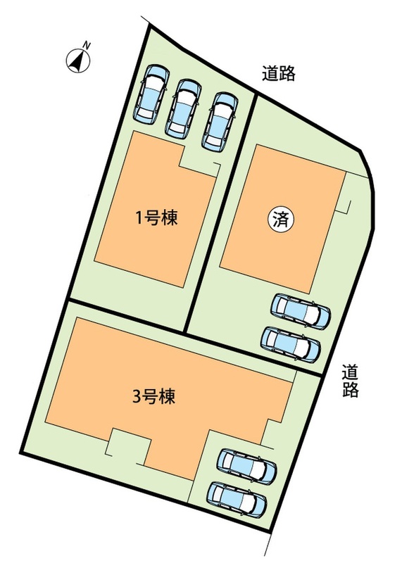 | 駐車場 | 2台 | 道路の幅員 | 北側4m、東側4m |