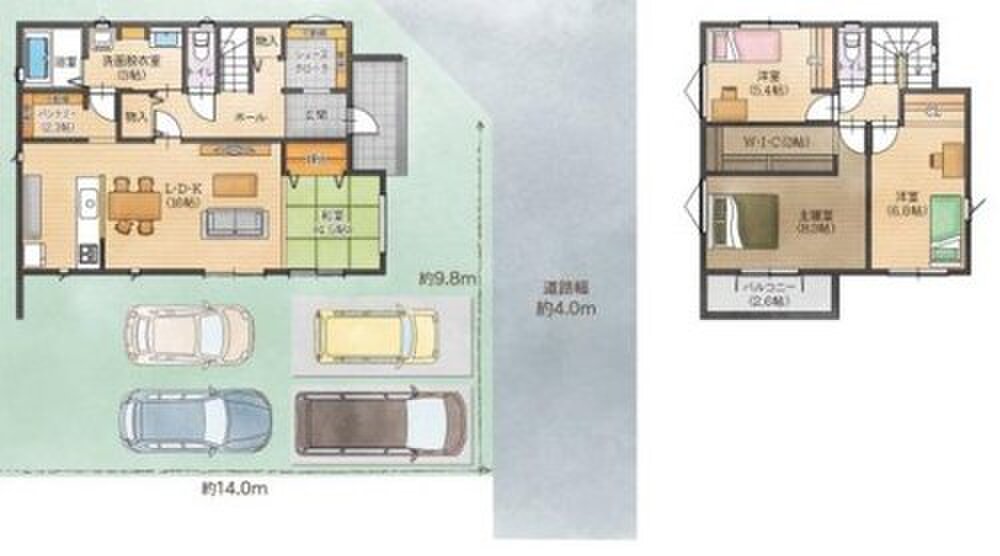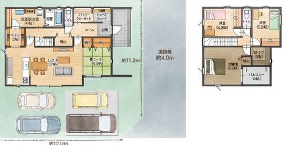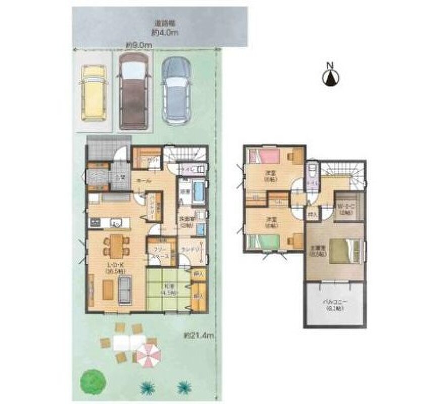 | 駐車場 | 3台 ~ 4台 | 道路の幅員 | 東側4m、北側5.1m |