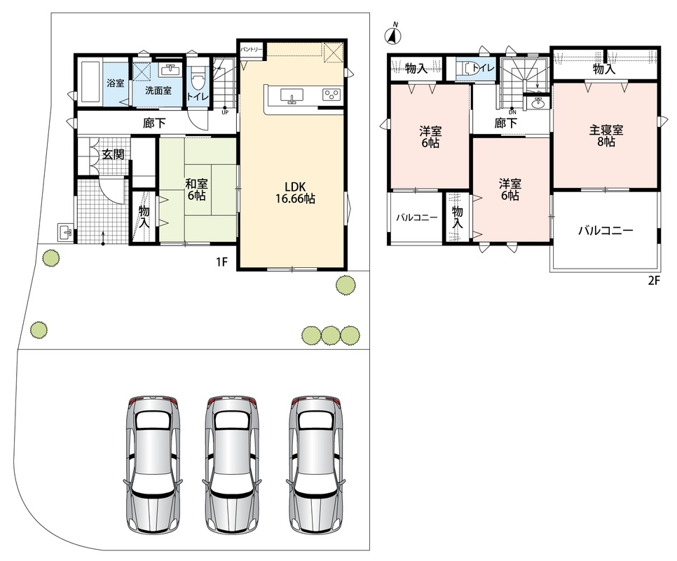 - ※完成予想図やCG合成画像は、門塀・植栽・庭・外観等、実際とは多少異なる場合があります。