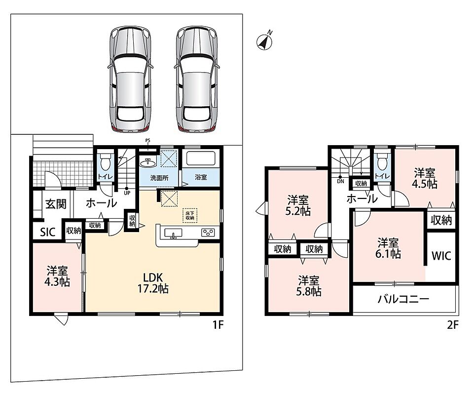 ・ゆとりのある敷地で並列駐車2台可能!来客時も安心!