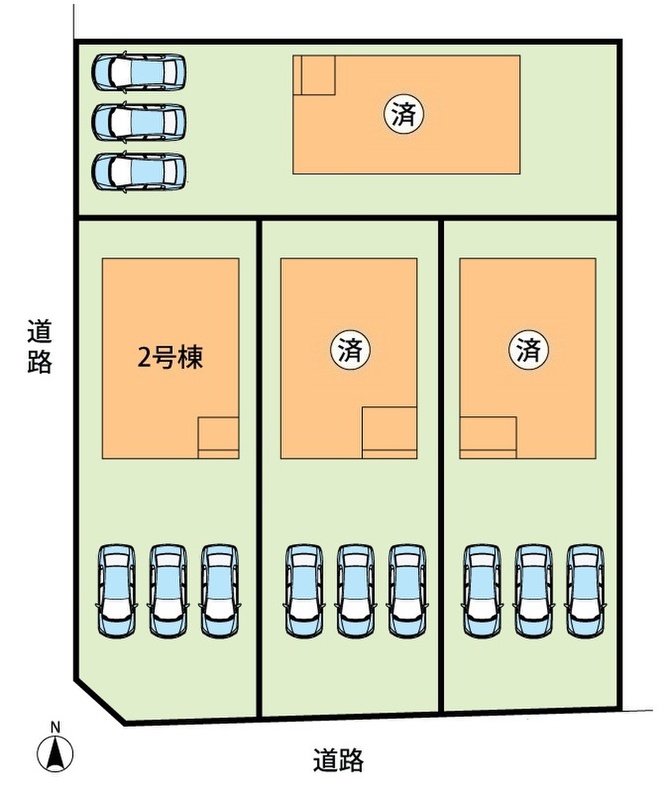 | 駐車場 | 3台 | 道路の幅員 | 南側6m、西側15.9m |