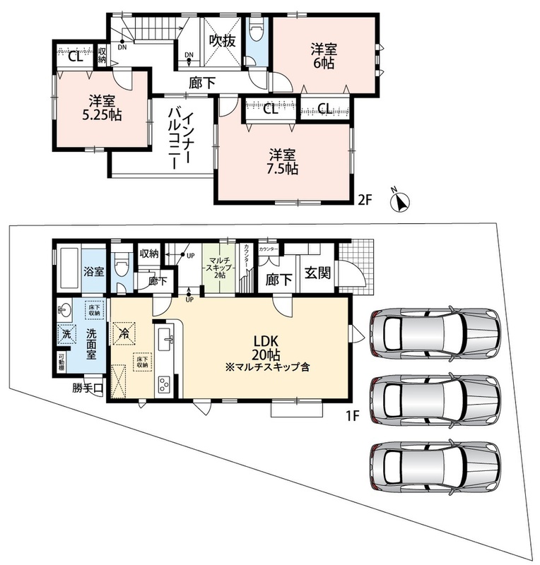 - ※完成予想図やCG合成画像は、門塀・植栽・庭・外観等、実際とは多少異なる場合があります。